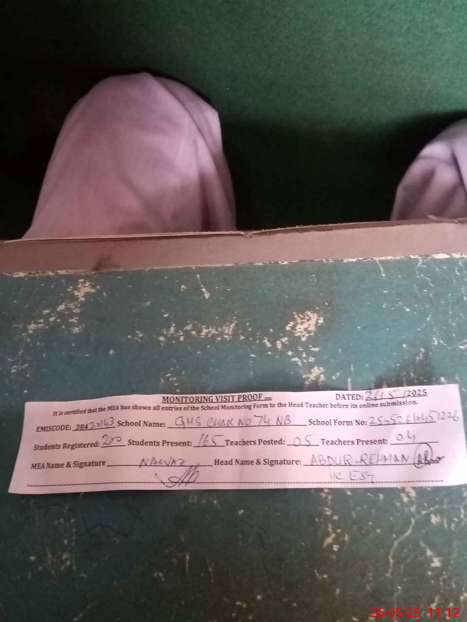 | EMIS Code: 38420143 | Name of School: GHS CHAK NO.74 NB | |||