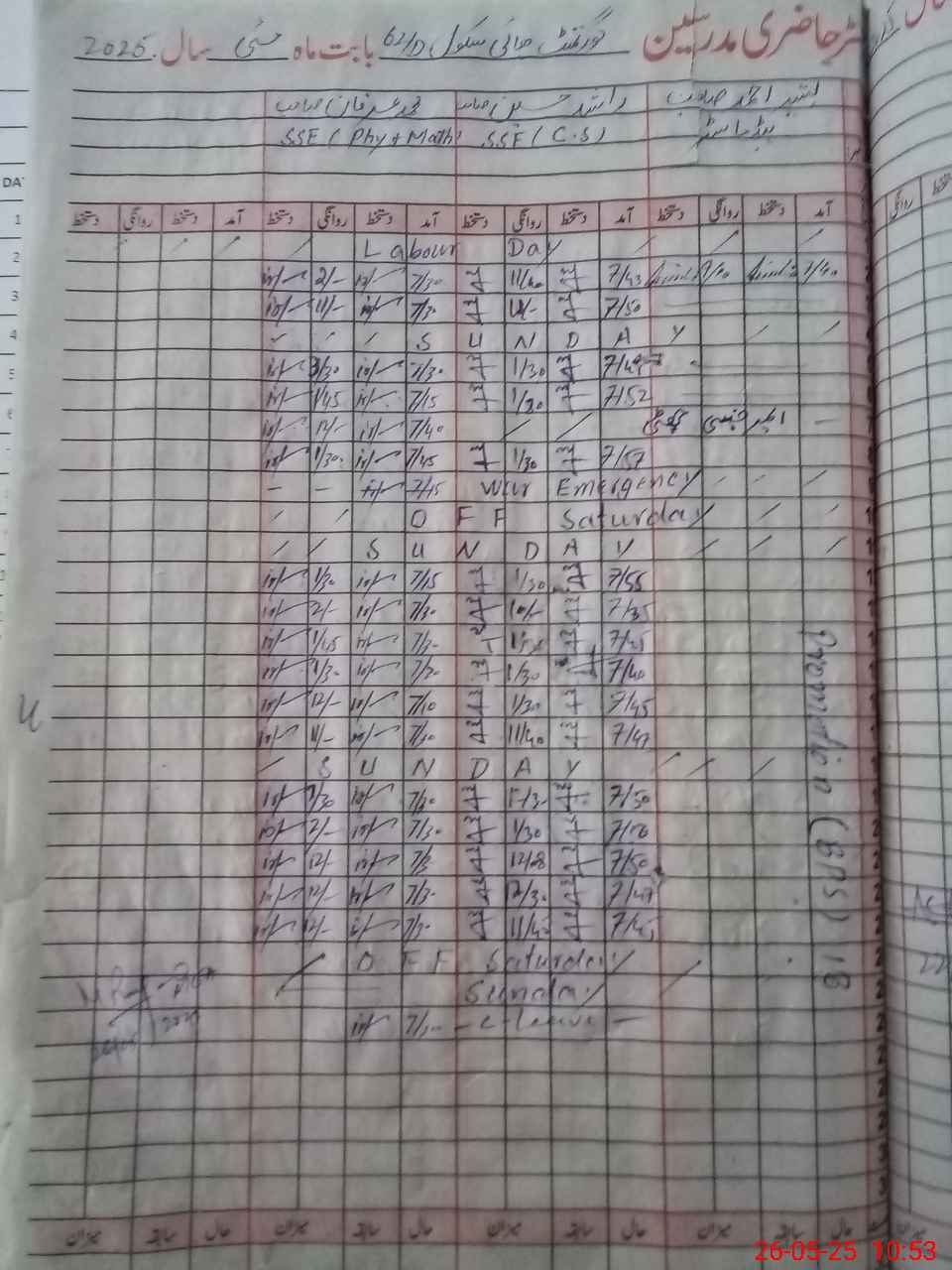 | CNIC | Full Name | Designation | R/C | Absence During Last Calender Month |