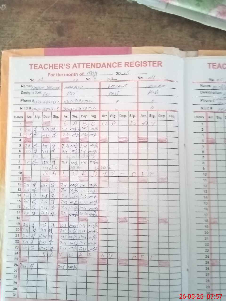| Name: NO**** SA**** Designation: (School Headmaster's/Headmistress's) PST Phone/Cell Number: 03**** |