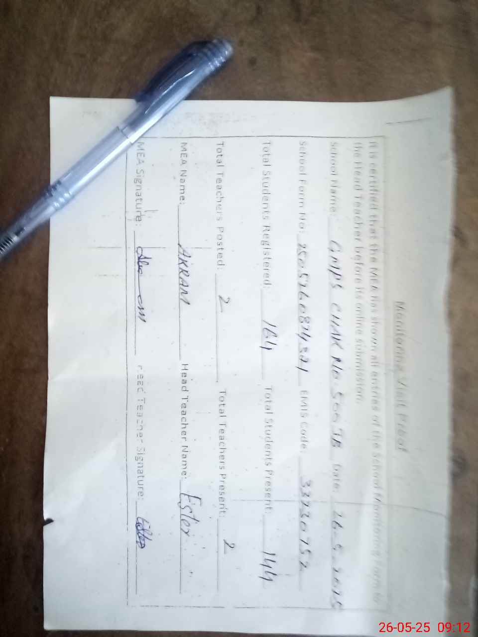 | EMIS Code: 33230752 | Name of School: GMPS CHAK NO. 500 JB | |||