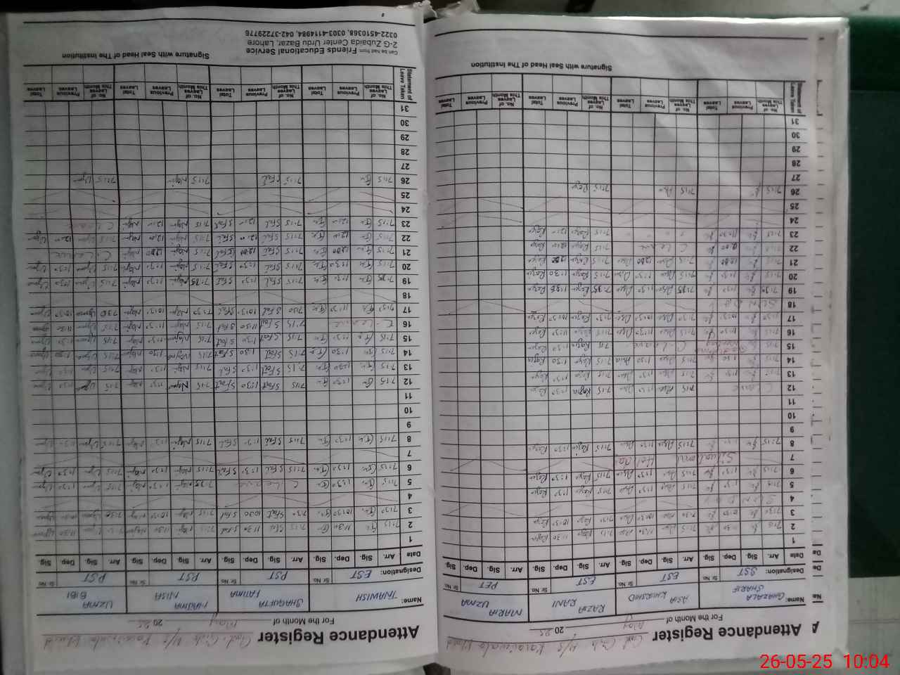 | 34**** | Ma**** Uz**** | Contract | 0 | 0 | 30 | 0 | 0 | 0 | 0 | 0 | 0 | Absent (Un-Authorized) | |