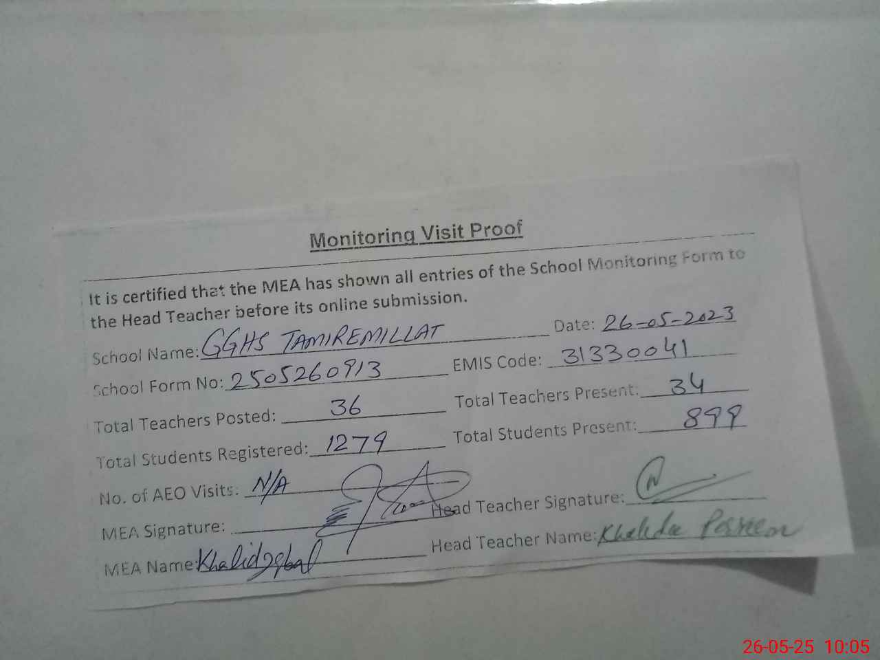 | EMIS Code: 31330041 | Name of School: GGHS TAMIR-E-MILLAT | |||