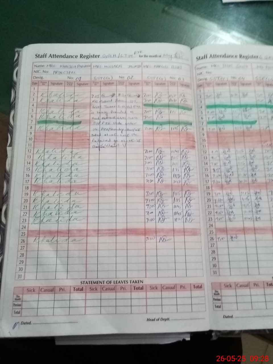 | Name: Kh**** Pe**** Designation: (School Headmaster's/Headmistress's) Principle Phone/Cell Number: 03**** |
