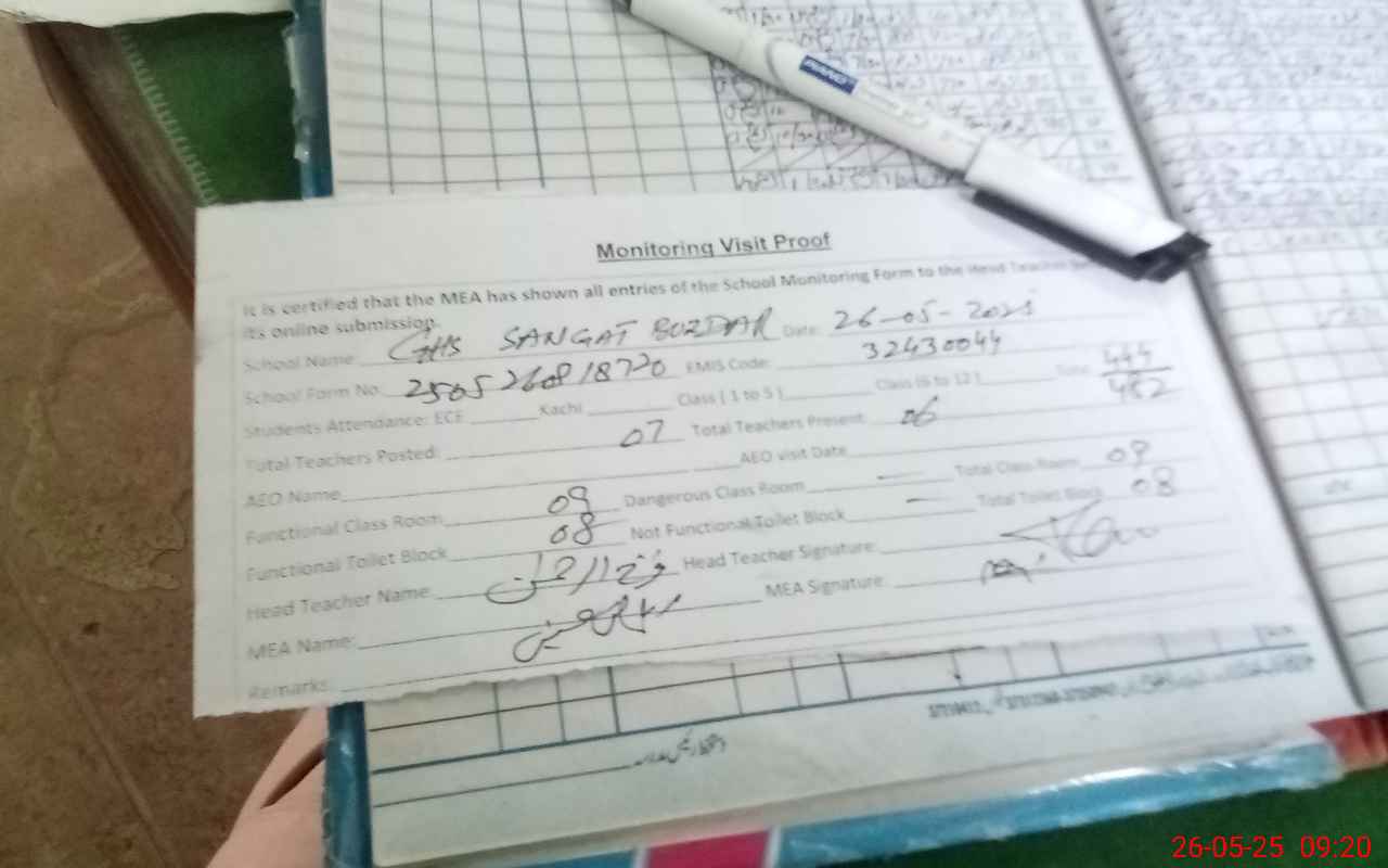 | EMIS Code: 32430044 | Name of School: GHS SANGAT BUZDAR | |||