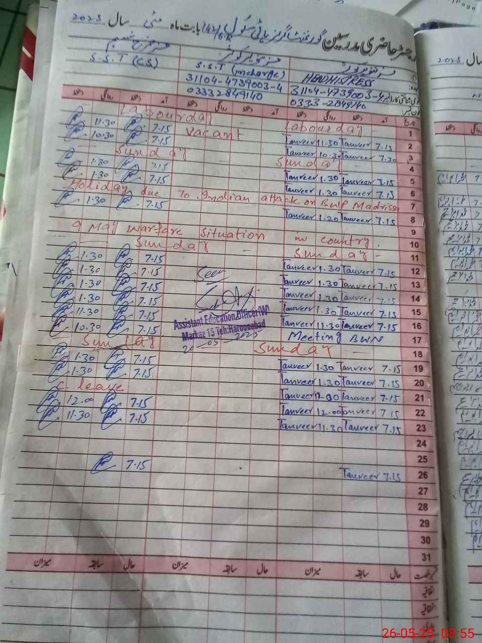 | Certified that this School was Inspected by the Undersigned MEA/DMO Today and the Information Stated Above is as Per Record. | |||||