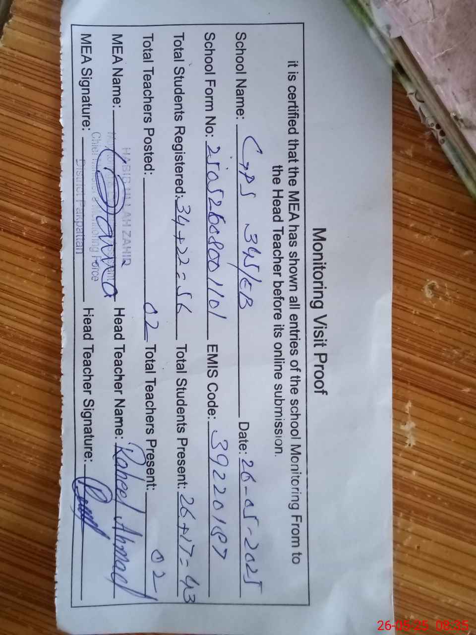 | Certified that this School was Inspected by the Undersigned MEA/DMO Today and the Information Stated Above is as Per Record. | |||||