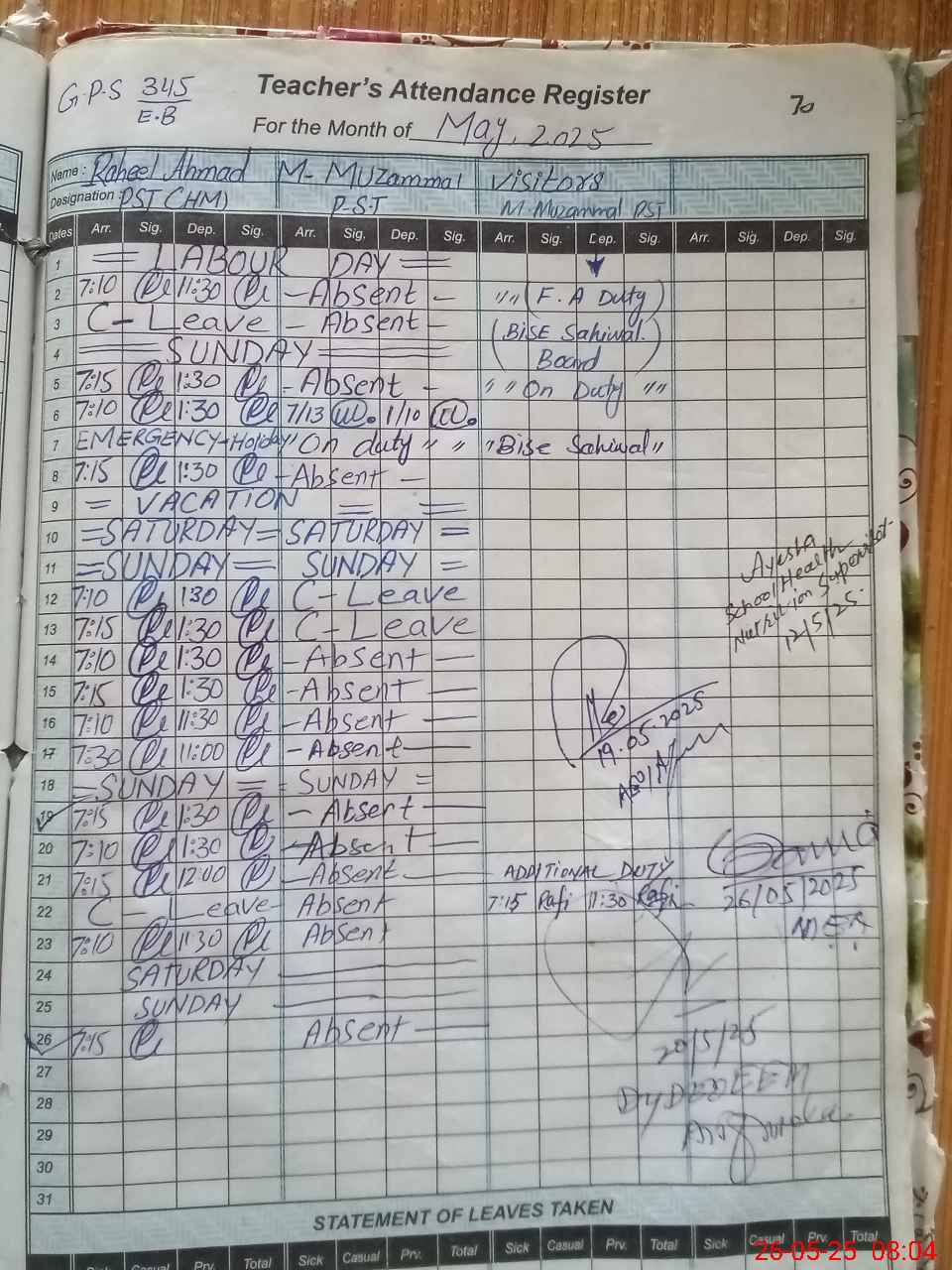 | 36**** | Mu**** Mu**** | PST | Regular | 4 | 0 | 26 | 0 | 0 | 0 | 0 | 0 | 4 | Absent (Un-Authorized) |