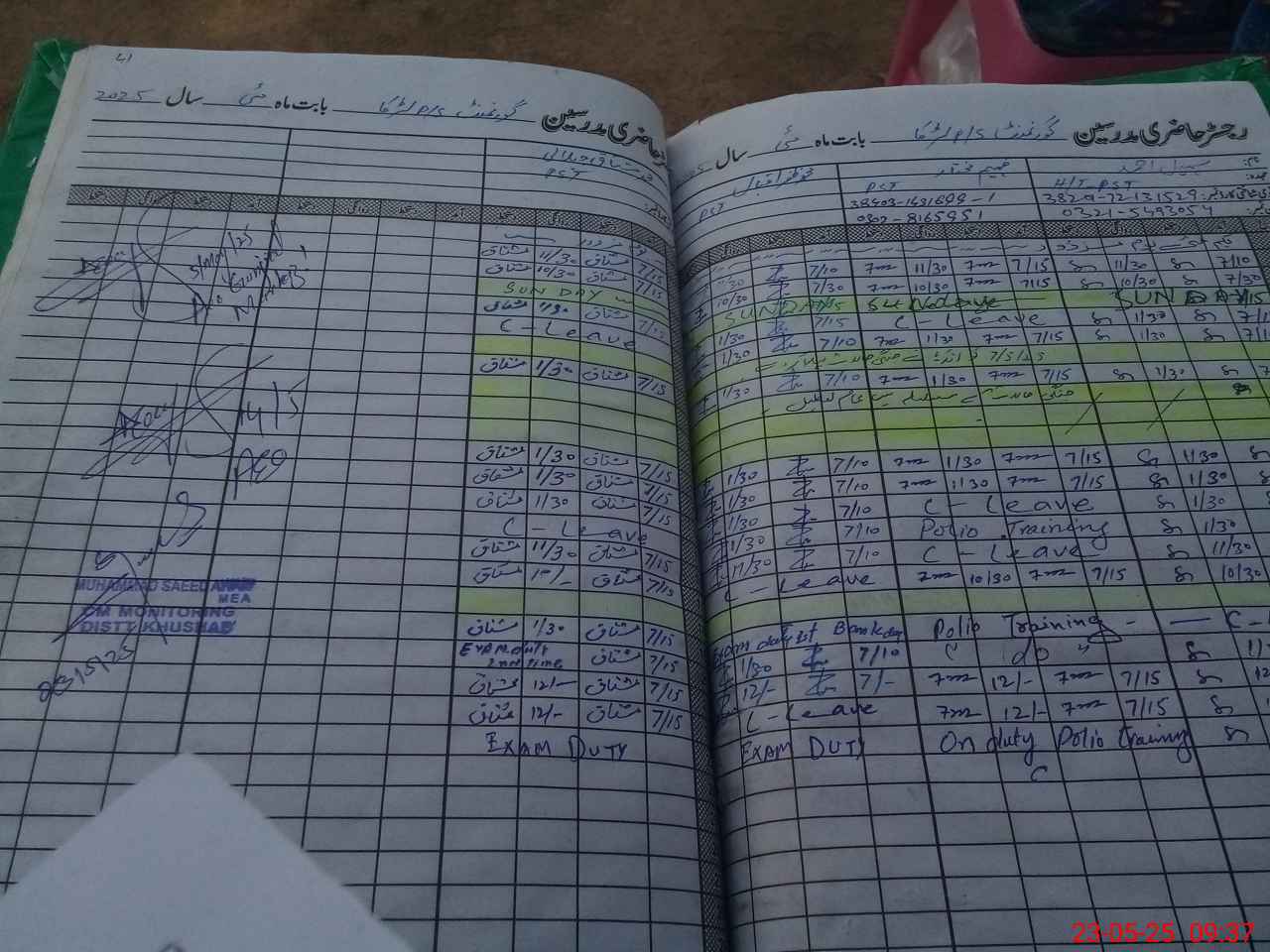 | 38**** | Mu**** Za**** Iq**** | PST | Regular | 0 | 0 | 0 | 0 | 0 | 0 | 0 | 0 | 0 | Exam Duty |