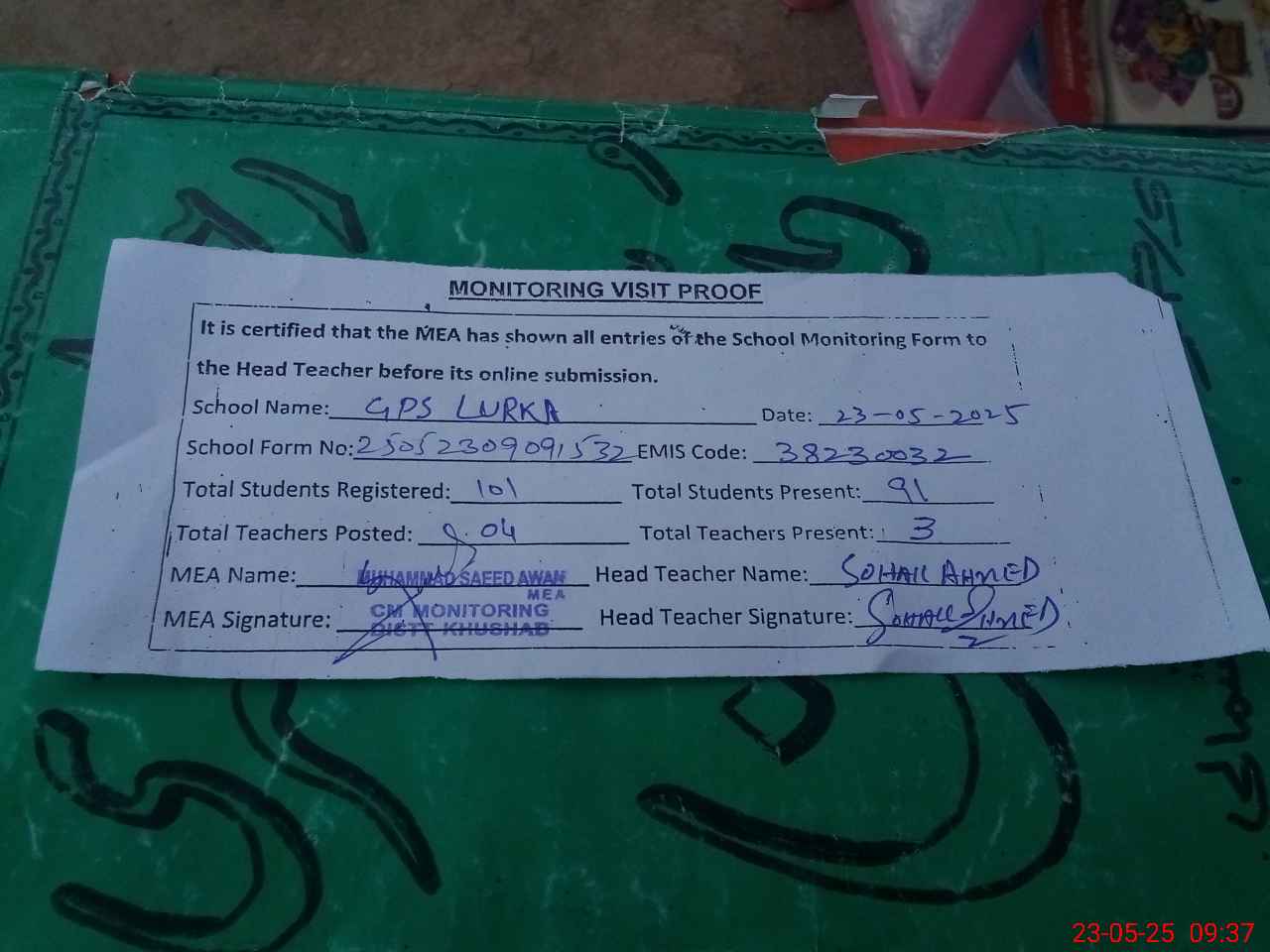 | EMIS Code: 38230032 | Name of School: GPS DERA LURKA | |||