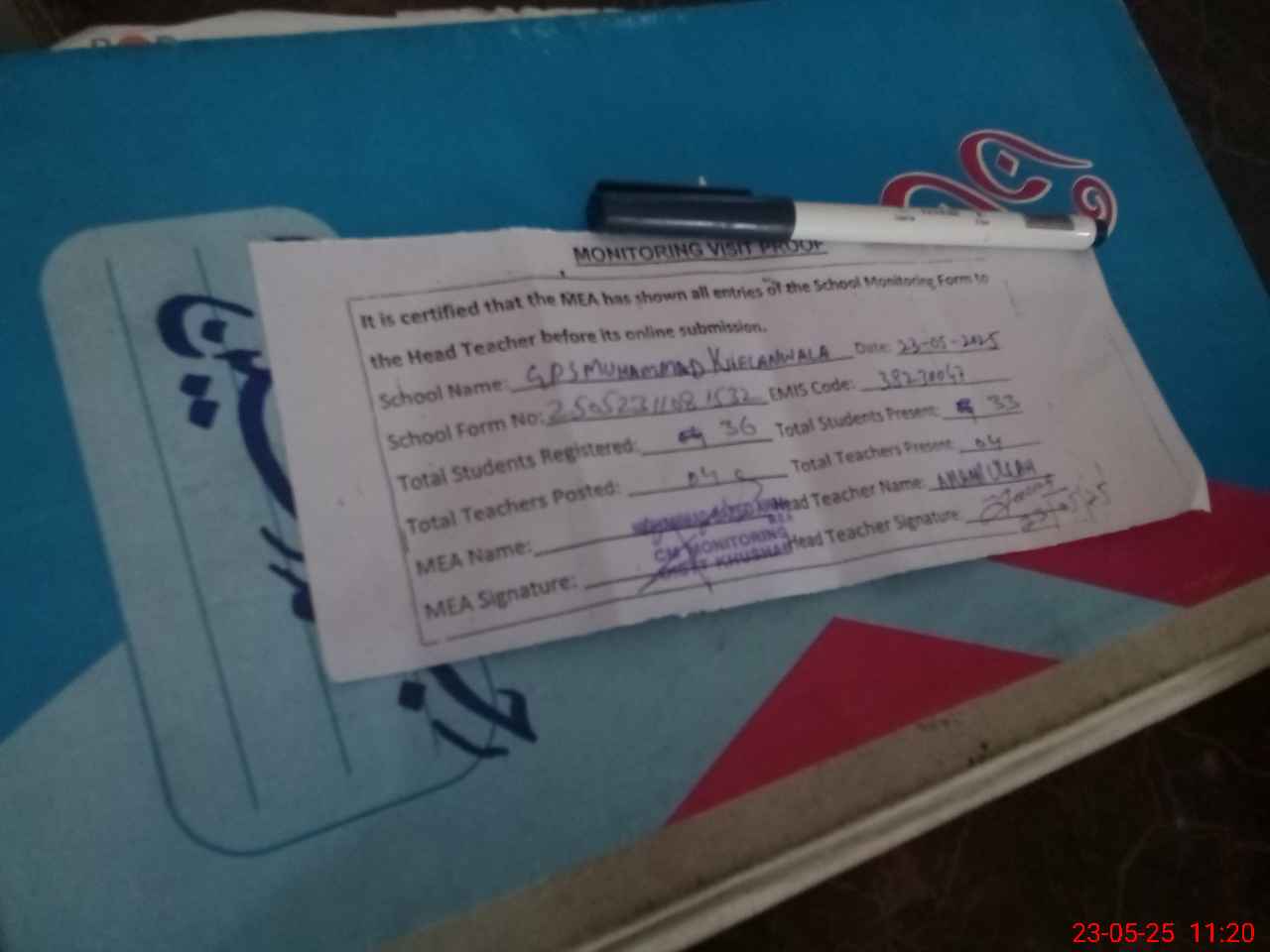 | Attendance Register | Head Teacher | MEA with School | Visit Proof |