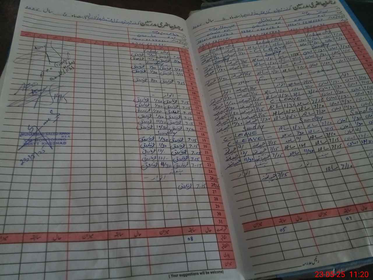 | CNIC | Full Name | Designation | R/C | Absence During Last Calender Month |
