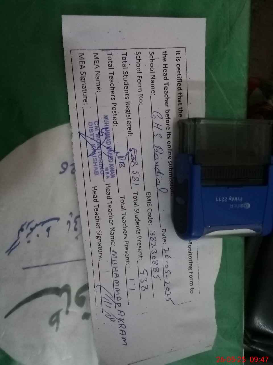 | EMIS Code: 38230885 | Name of School: GHS BANDIAL | |||