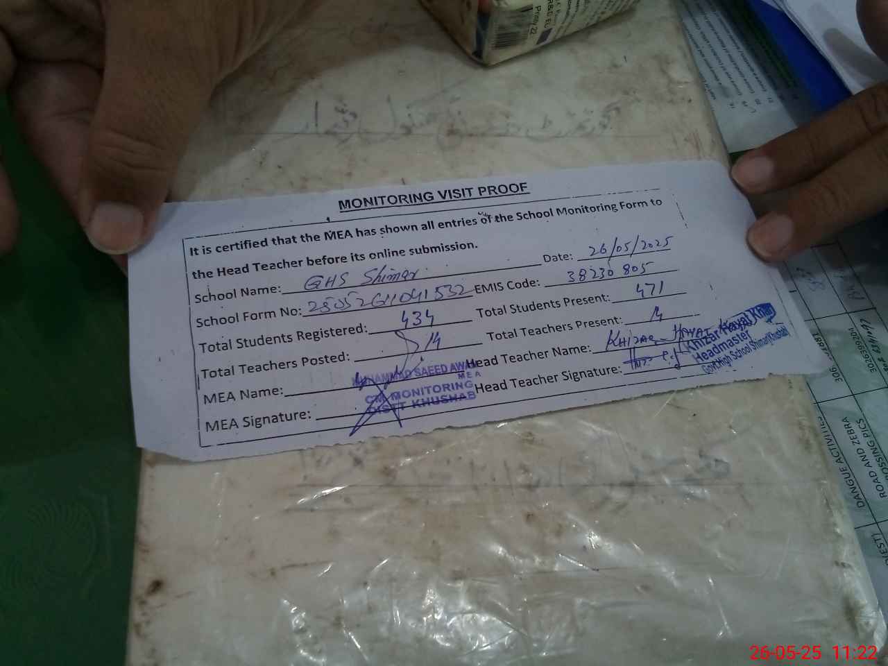 | EMIS Code: 38230805 | Name of School: GHS SHIMAR | |||