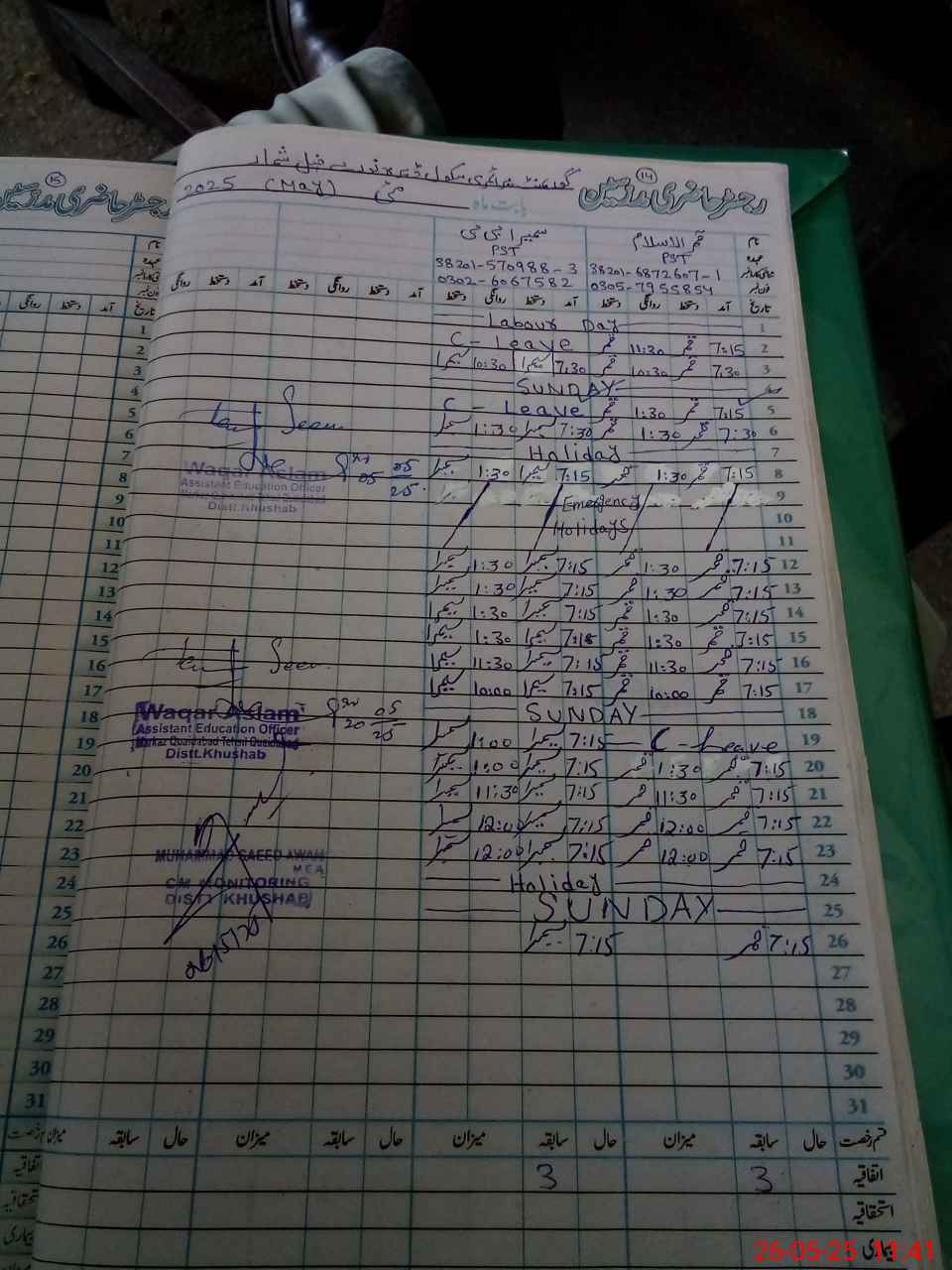 | Name: Qa**** Is**** Designation: (School Headmaster's/Headmistress's) PST Phone/Cell Number: 03**** |