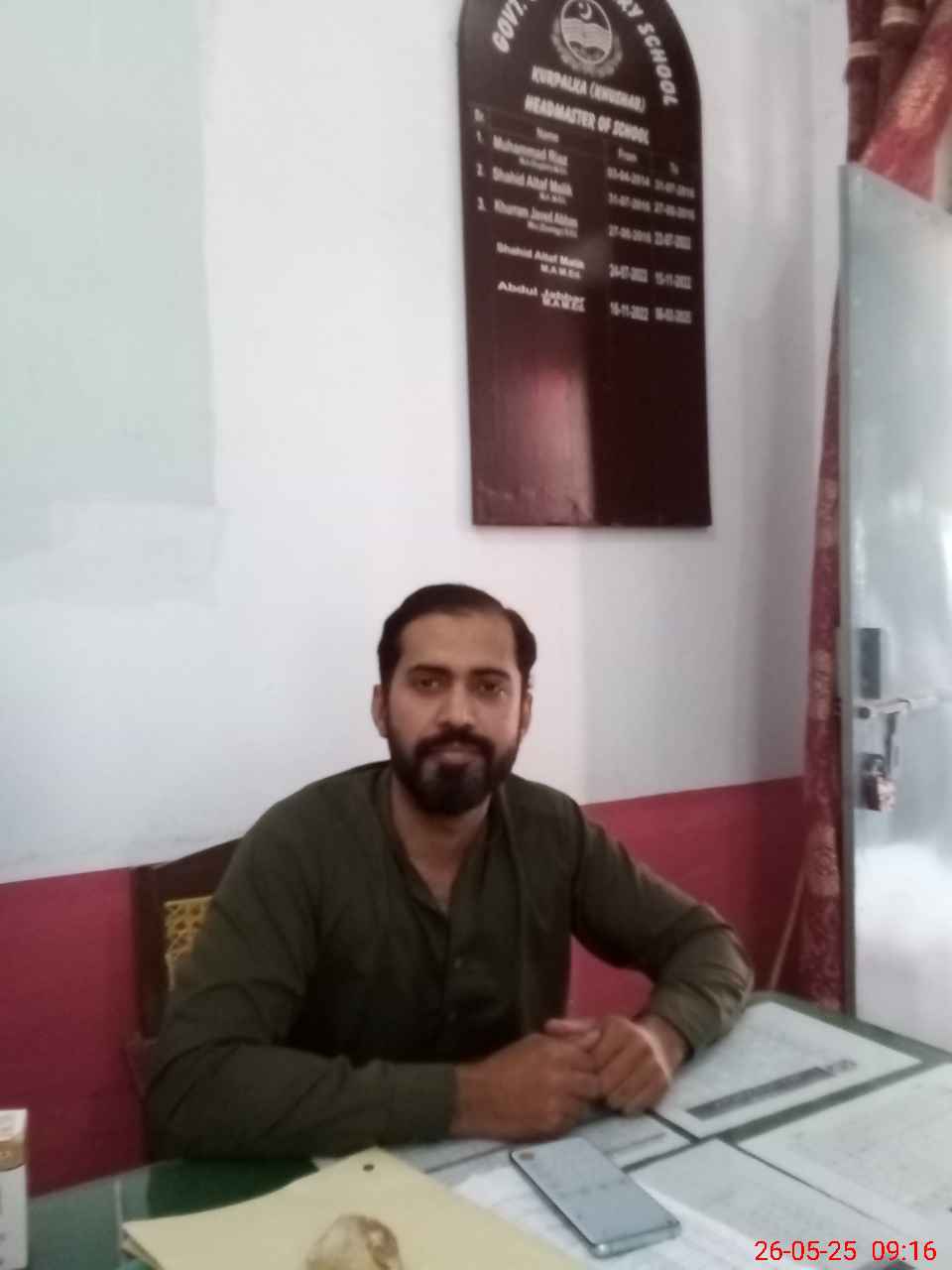 | Name: Uz**** Sa**** Designation: (School Headmaster's/Headmistress's) Est Incharge Phone/Cell Number: 03**** |