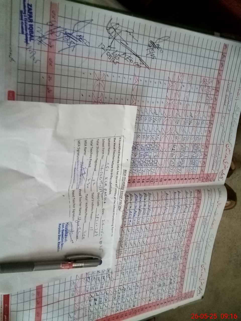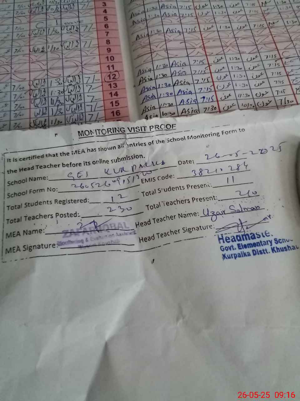 | Attendance Register | Head Teacher | MEA with School | Visit Proof |