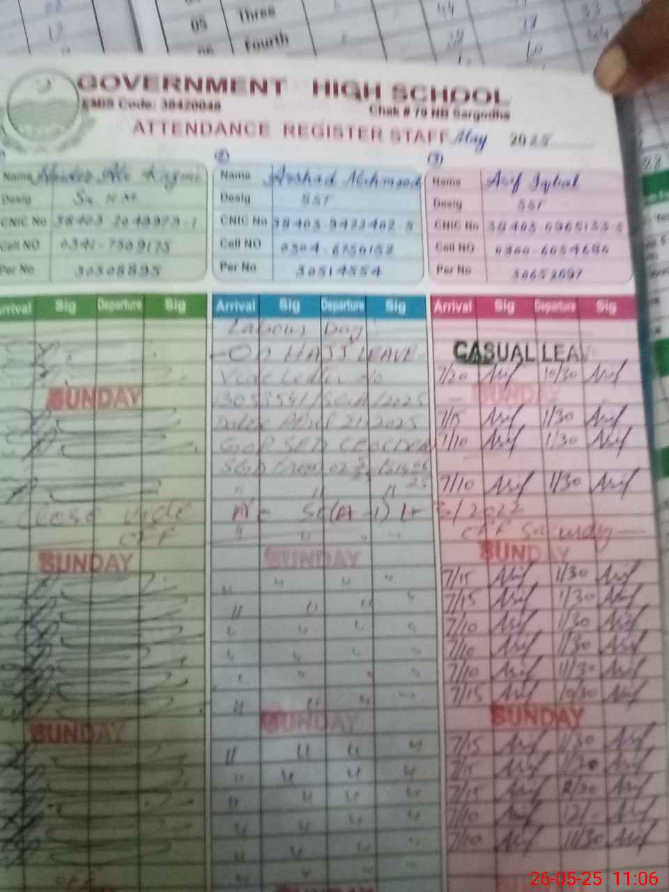 | 38**** | Sy**** Mu**** Ar**** Ab**** Sh**** | 3 | 1 | 0 | 0 | 0 | 0 | 0 | 0 | 0 | 0 | 0 | Exam Duty |