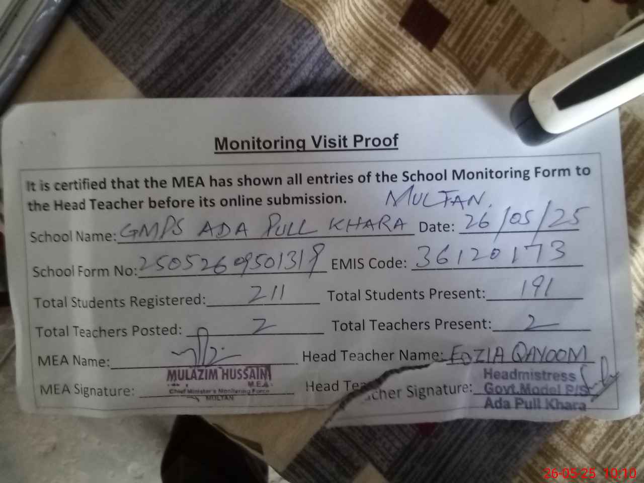 | EMIS Code: 36120173 | Name of School: GMPS ADA PULL KHARA | |||