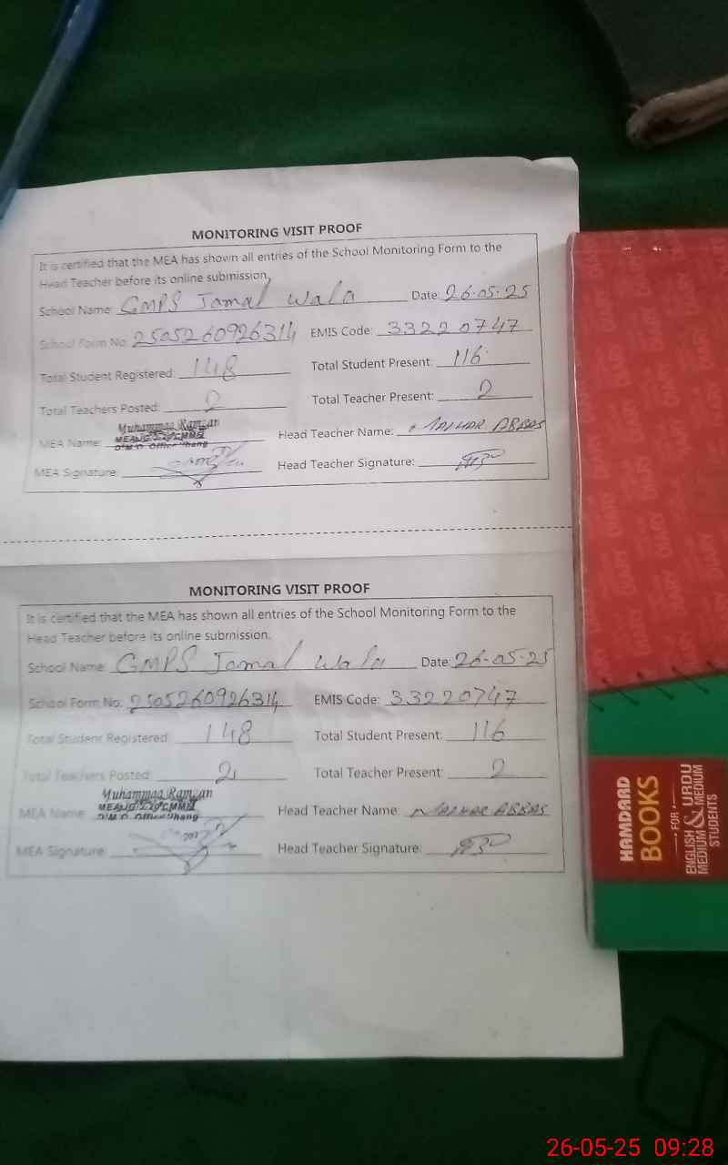 | EMIS Code: 33220747 | Name of School: GMPS JAMAL WALA | |||