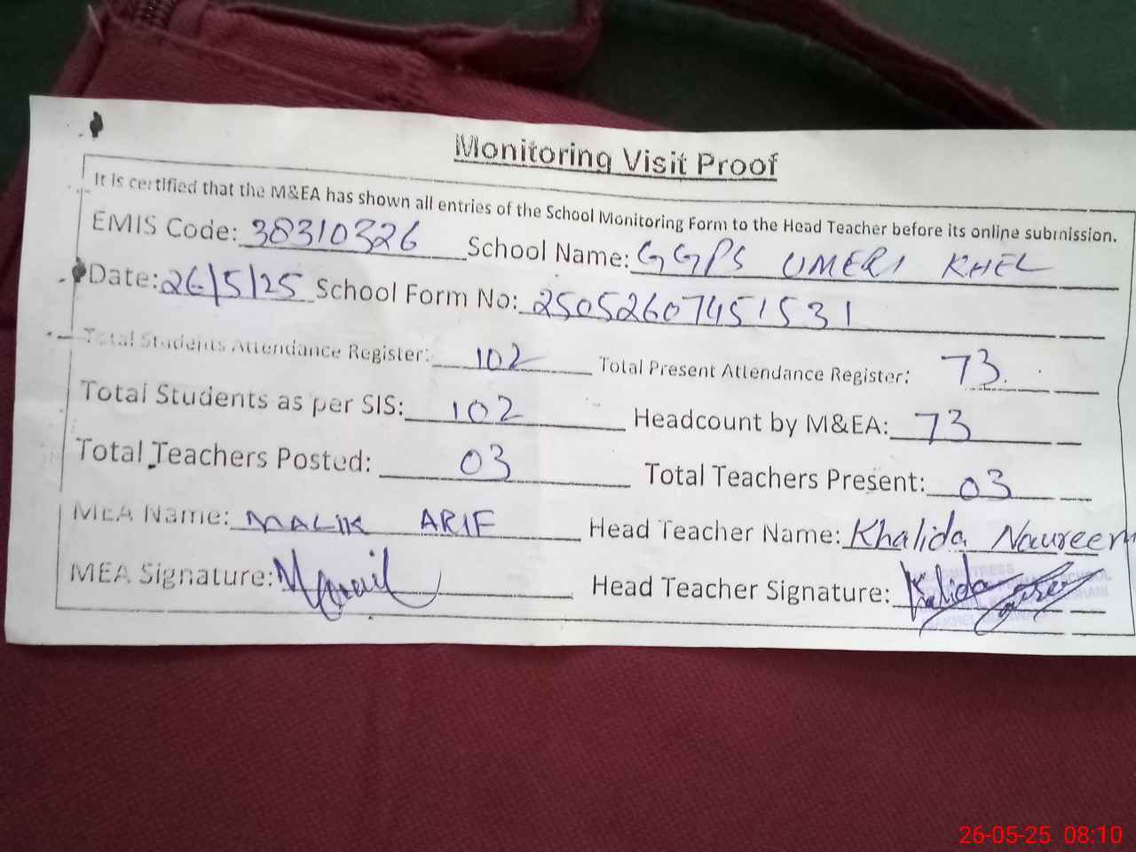 | EMIS Code: 38310326 | Name of School: GGPS UMRI KHEL | |||