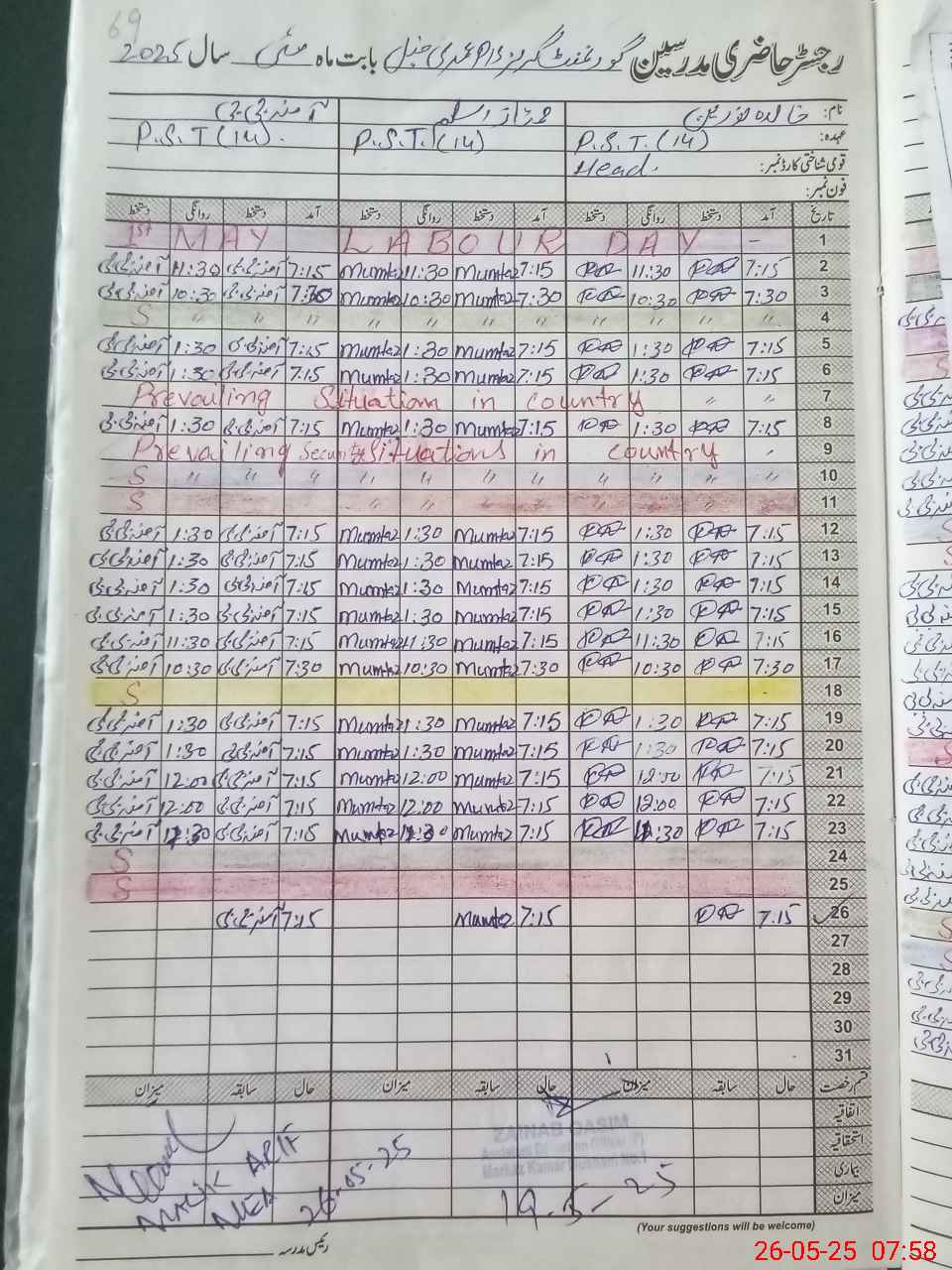 | Monitoring Date: 26-05-2025 | Start Time: 26-05-2025 07:45 AM | End Time: 26-05-2025 08:13 AM | Name of MEA: MU**** AR**** | |