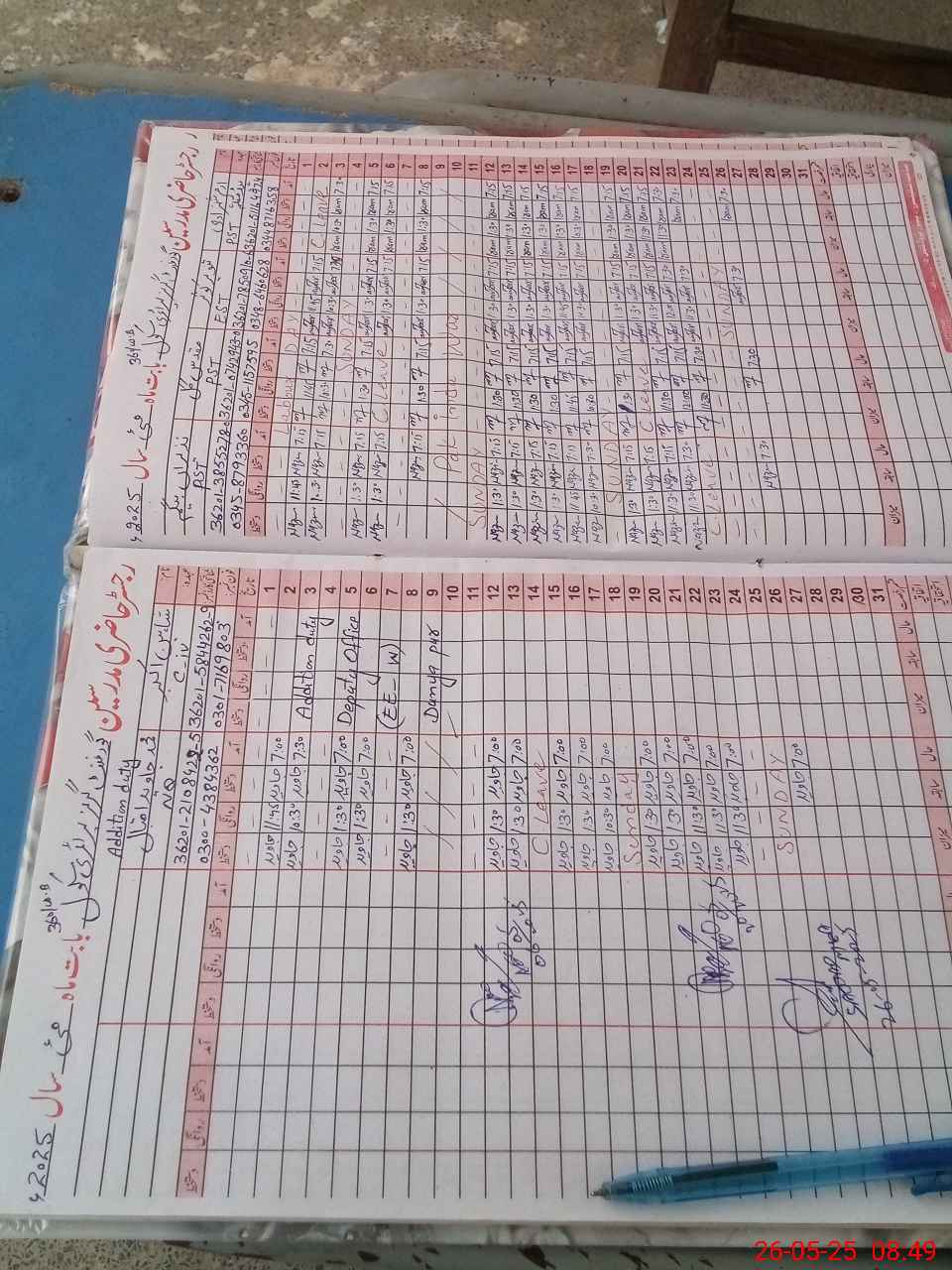 | CNIC | Full Name | Designation | R/C | Absence During Last Calender Month |