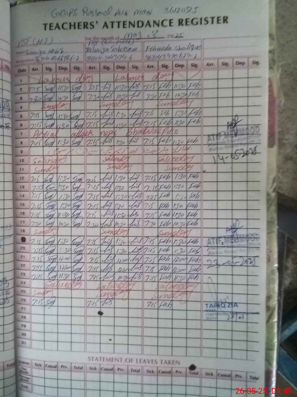 | Remarks (Use Separate Page if Required): NSB record provided UpTo 07 Apr 2025 Attendance as per roznamcha | |||||