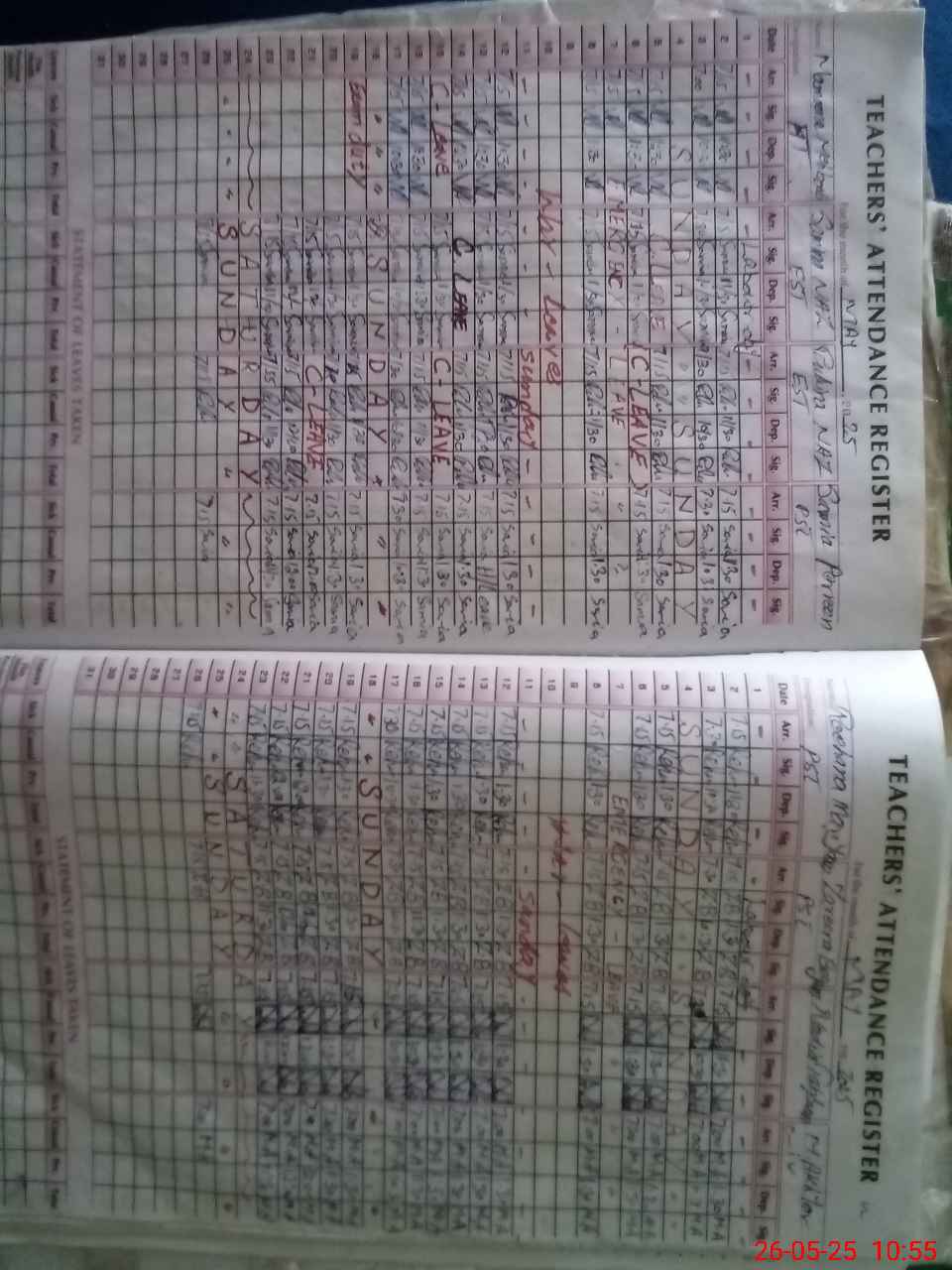 | Leave | Duty | Absent | Maternity | Medical | Ex- Pak |