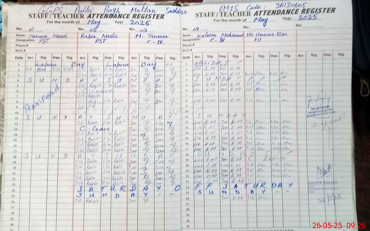 | District: MULTAN | Tehsil: MULTAN SADAR | Markaz: KHOKHRAN - FEMALE | Level: Primary | |