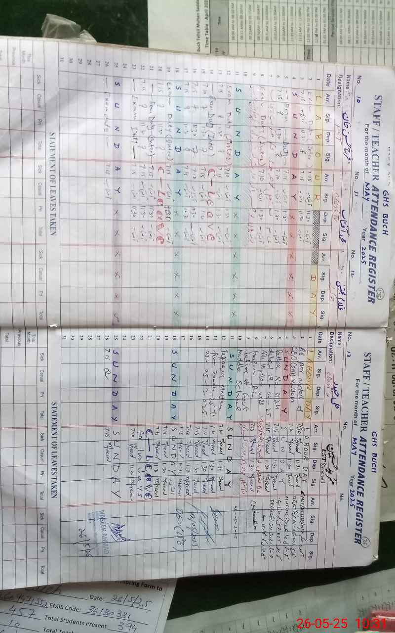| 36**** | Fa**** Ha**** Kh**** | 1 | 1 | 0 | 0 | 0 | 0 | 0 | 0 | 0 | 0 | 0 | Exam Duty |
