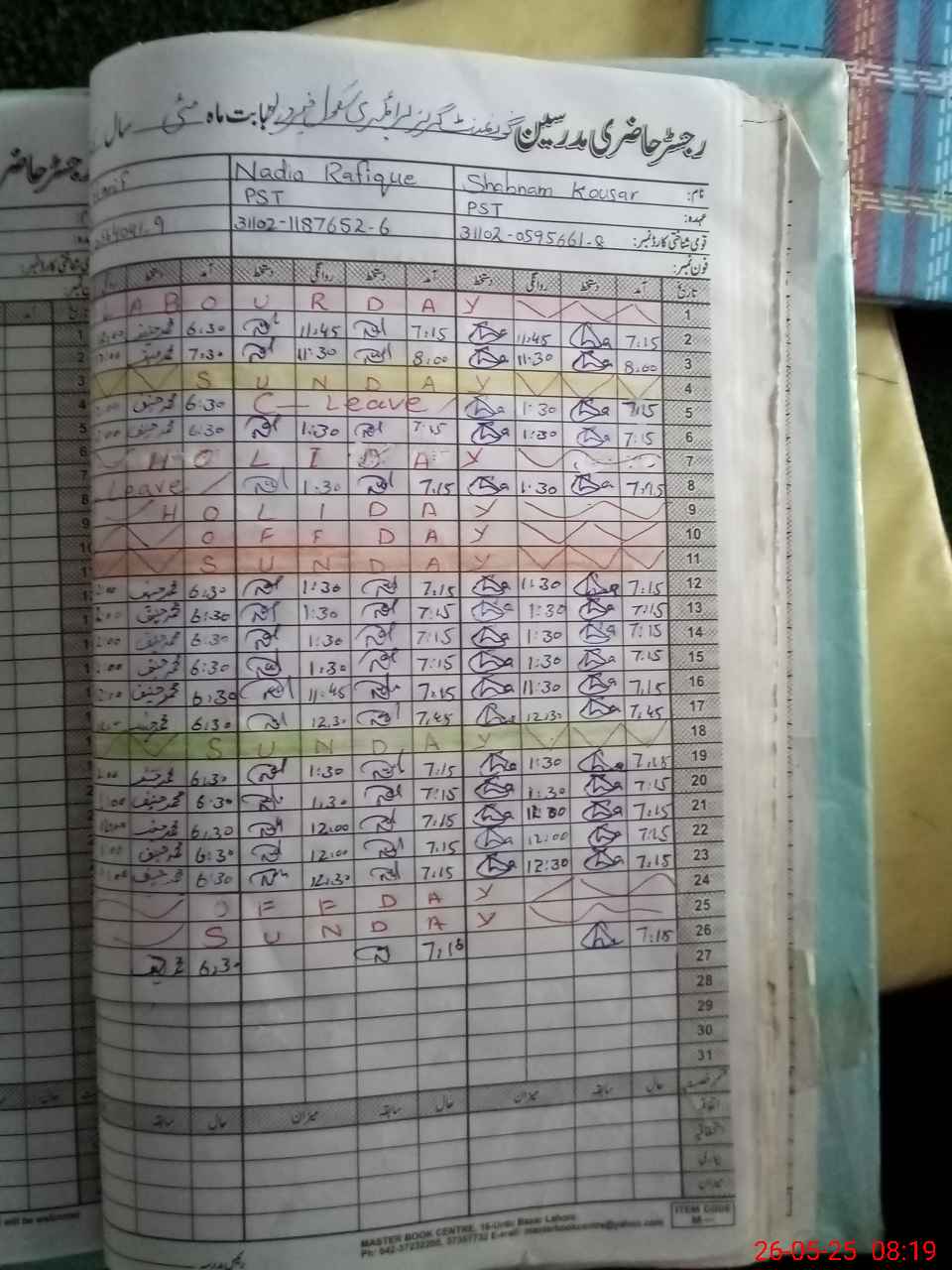 | CNIC | Full Name | Designation | R/C | Absence During Last Calender Month |