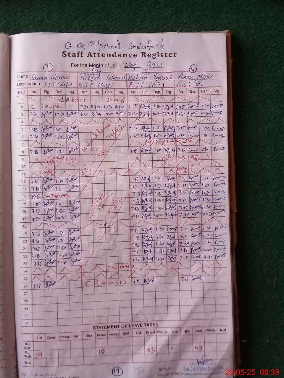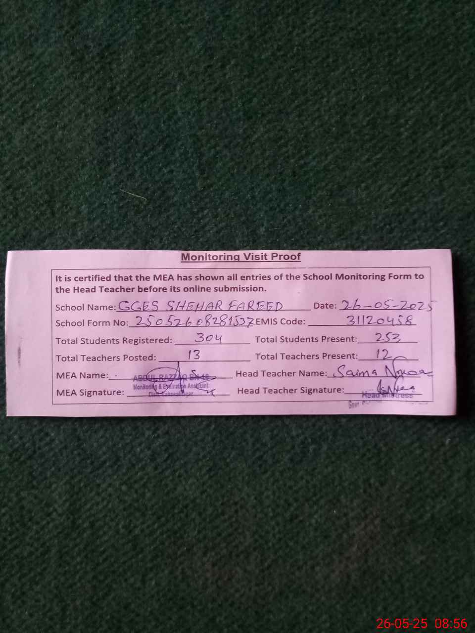 | EMIS Code: 31120458 | Name of School: GGES SHEHAR FAREED | |||