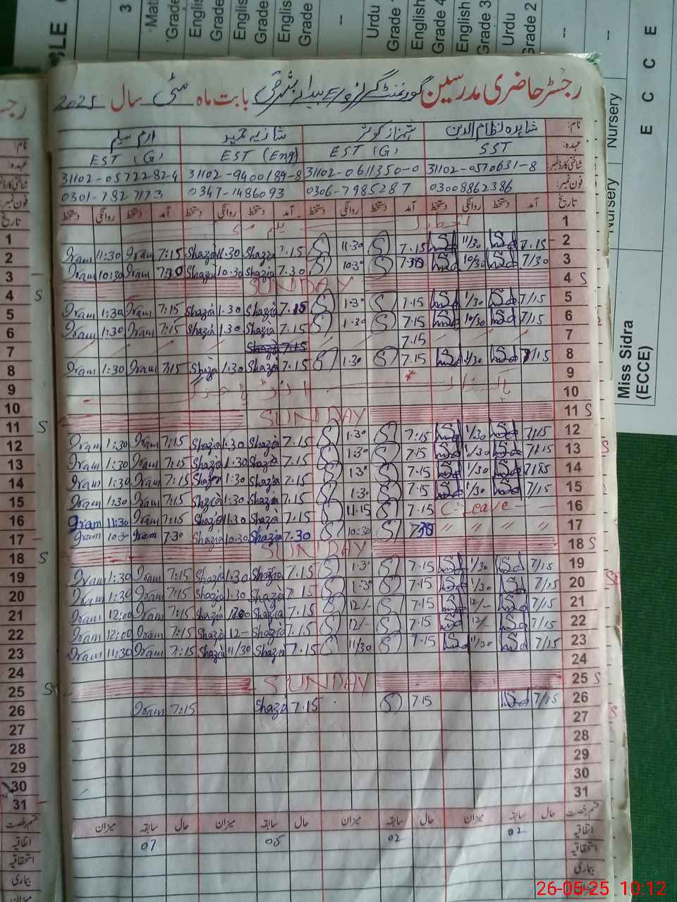 | Name: Sh**** Ni**** Designation: (School Headmaster's/Headmistress's) SST GEN Phone/Cell Number: 03**** |