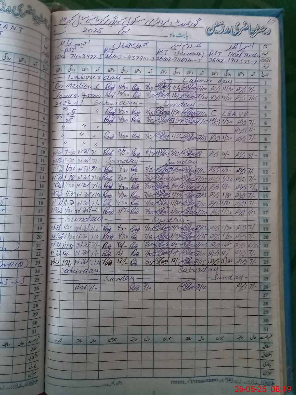 | CNIC | Full Name | Designation | R/C | Absence During Last Calender Month |