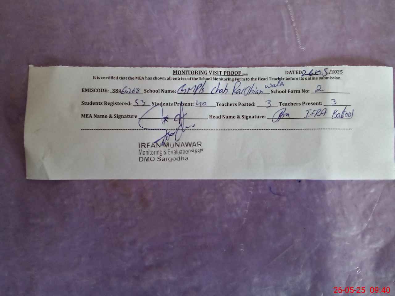 | EMIS Code: 38460268 | Name of School: GMPS CHAH RANJHIAN WALA | |||