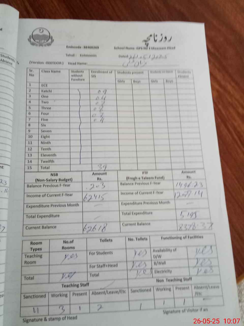 | EMIS Code: 38460269 | Name of School: GPS NO.2 MOAZAM ABAD | |||
