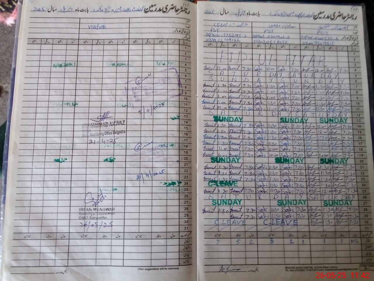 | CNIC | Full Name | Designation | R/C | Absence During Last Calender Month |
