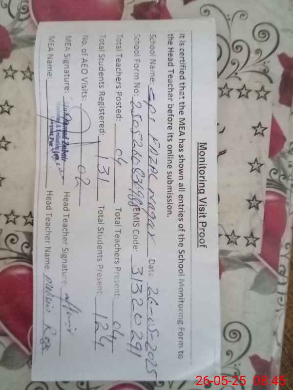 | EMIS Code: 31320291 | Name of School: GPS FAZAL NAGAR | |||