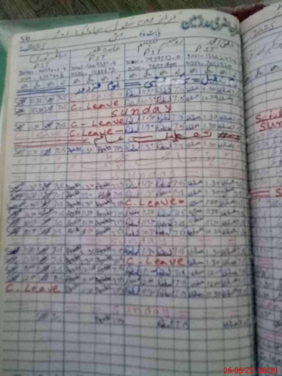 | Leave | Duty | Absent | Maternity | Medical | Ex- Pak |