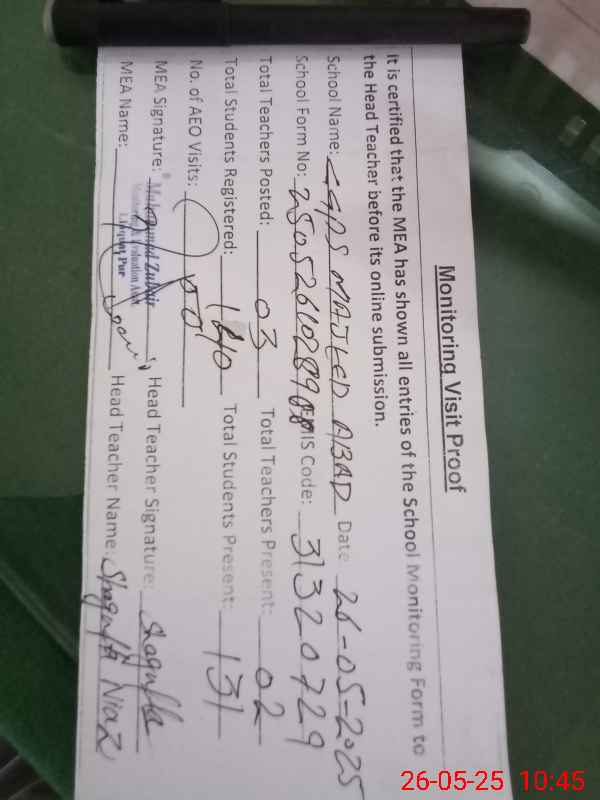 | EMIS Code: 31320729 | Name of School: GGPS MAJEED ABAD | |||