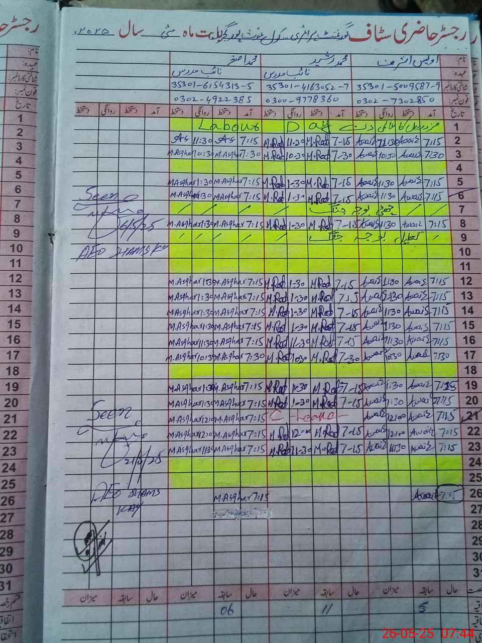 | Name: Mu**** Ak**** Designation: (School Headmaster's/Headmistress's) PST Phone/Cell Number: 03**** |