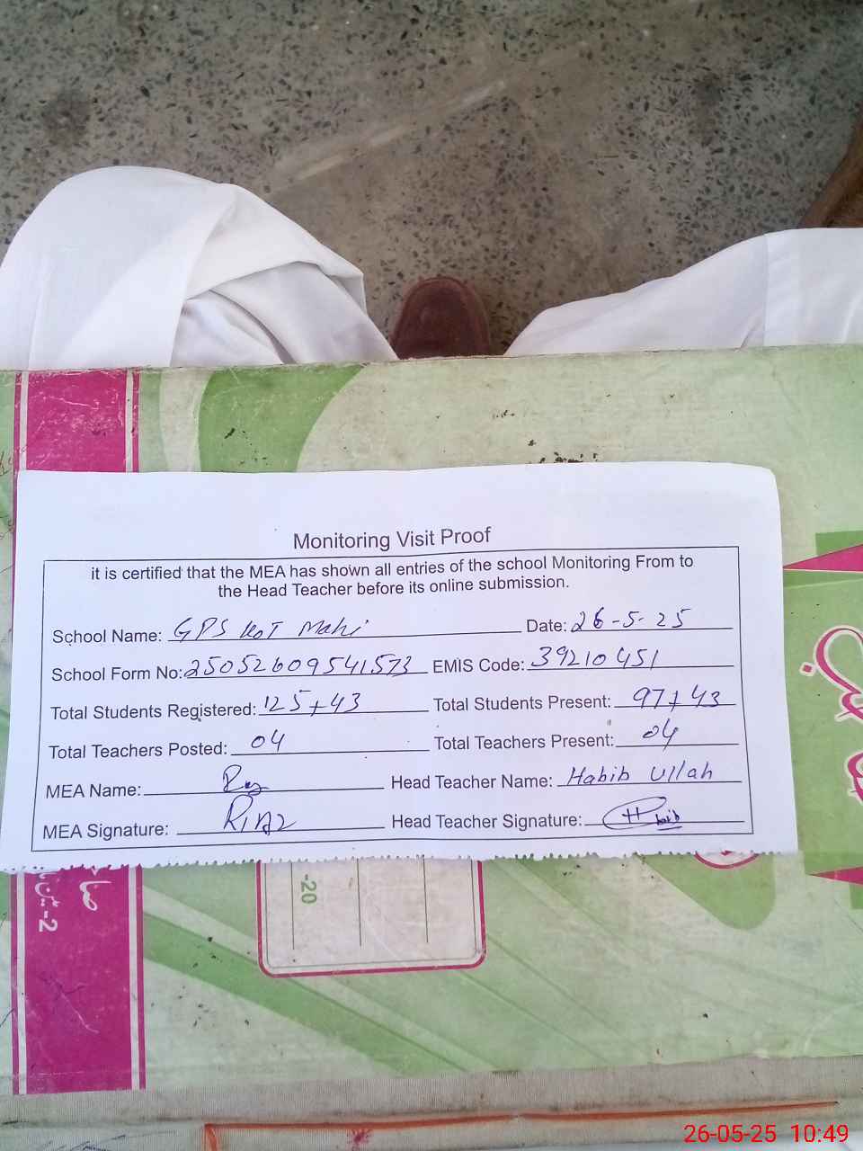 | EMIS Code: 39210451 | Name of School: GPS KOT MAHI P/O DHUPA | |||