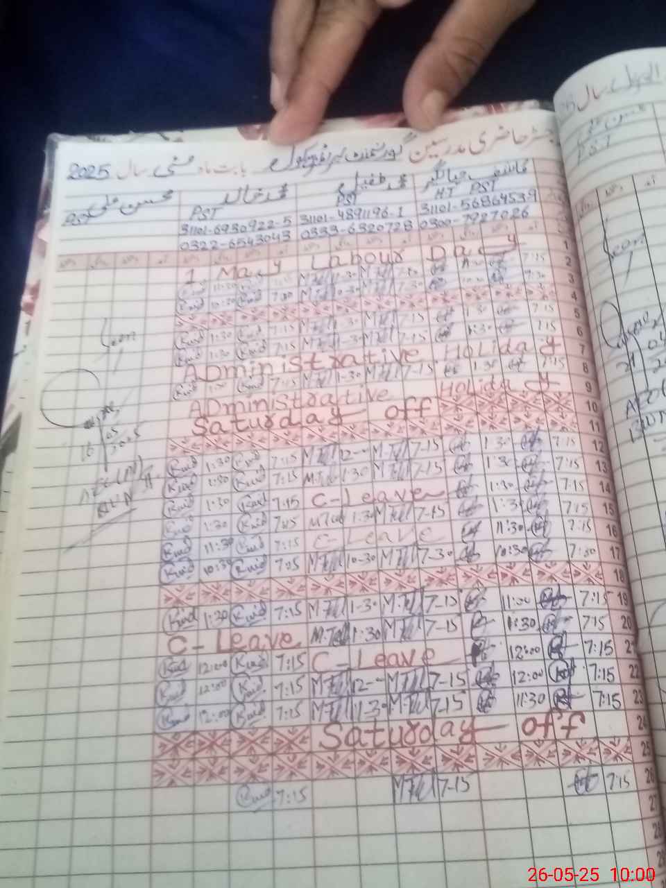 | Leave | Duty | Absent | Maternity | Medical | Ex- Pak |