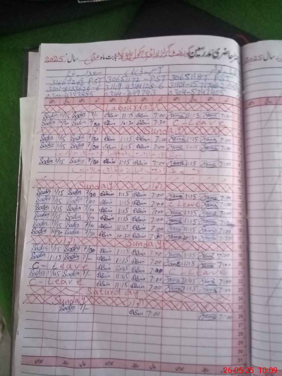 | Leave | Duty | Absent | Maternity | Medical | Ex- Pak |