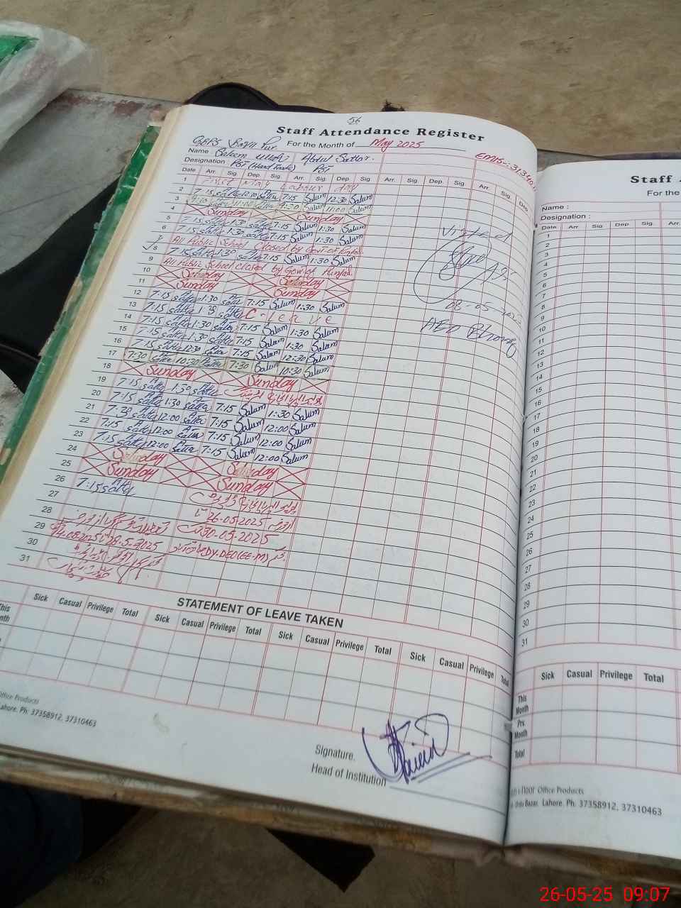 | Name: Sa**** Ul**** Designation: (School Headmaster's/Headmistress's) PST Phone/Cell Number: 03**** |
