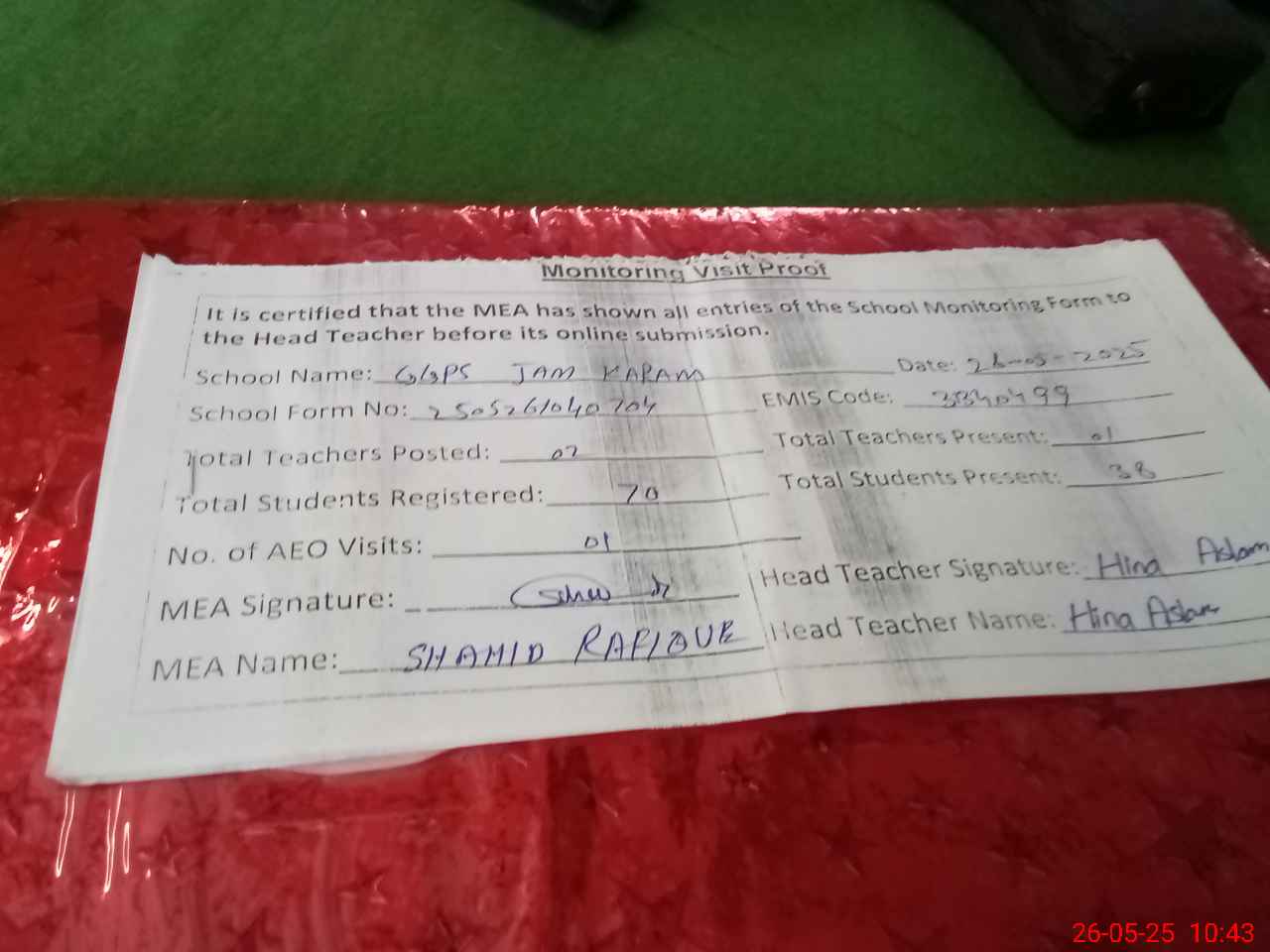 | EMIS Code: 31340499 | Name of School: GGPS JAM KARAM | |||