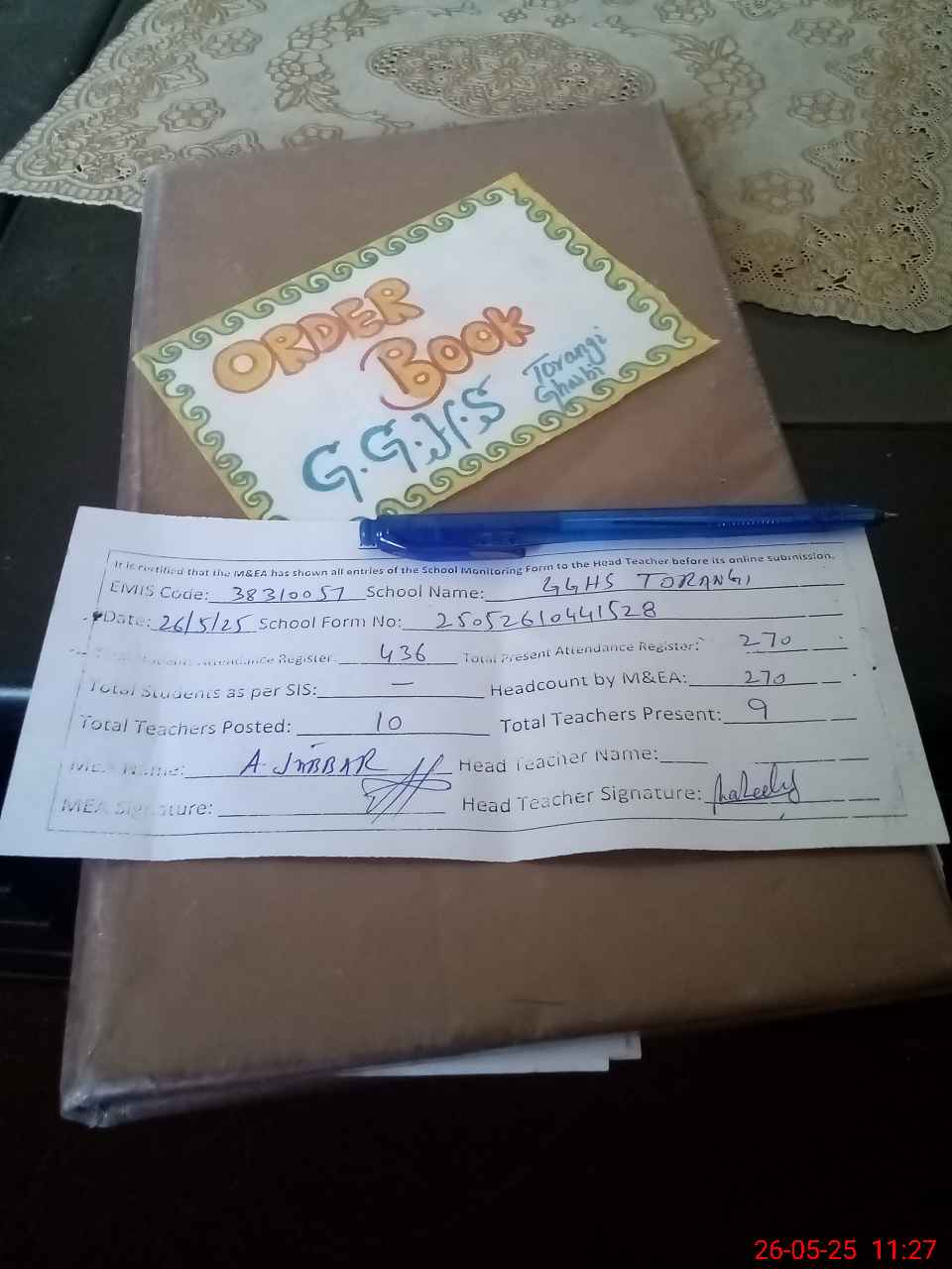 | Attendance Register | Head Teacher | MEA with School | Visit Proof |