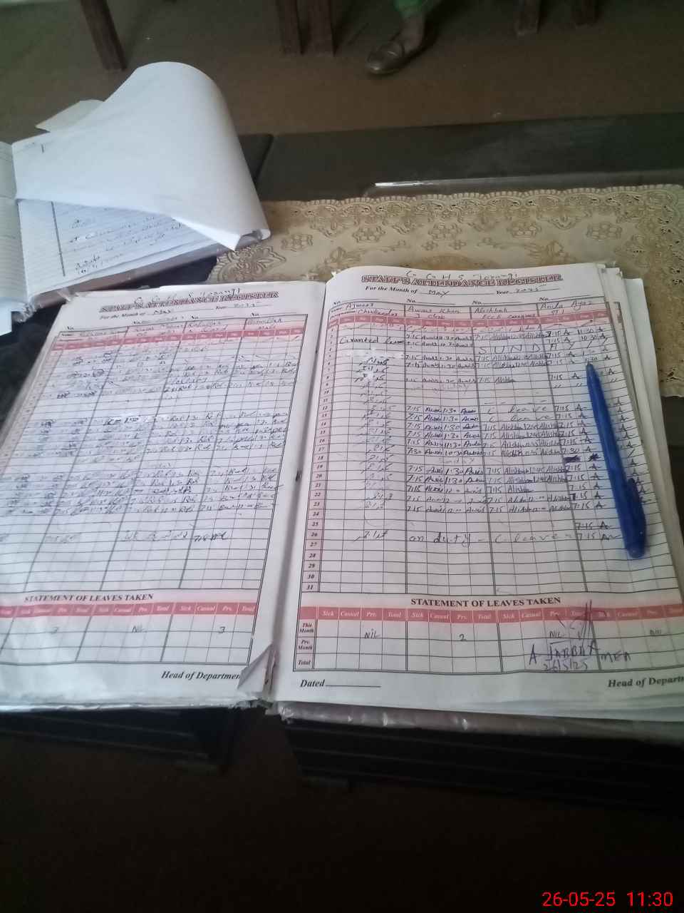 | Leave | Duty | Absent | Maternity | Medical | Ex- Pak |