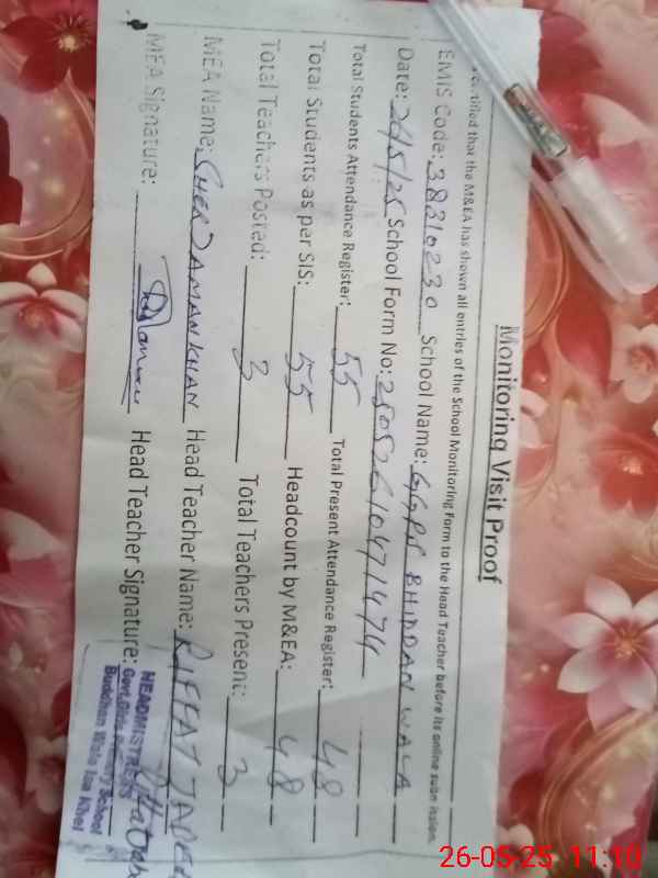 | EMIS Code: 38310230 | Name of School: GGPS BHIDDAN WALA | |||