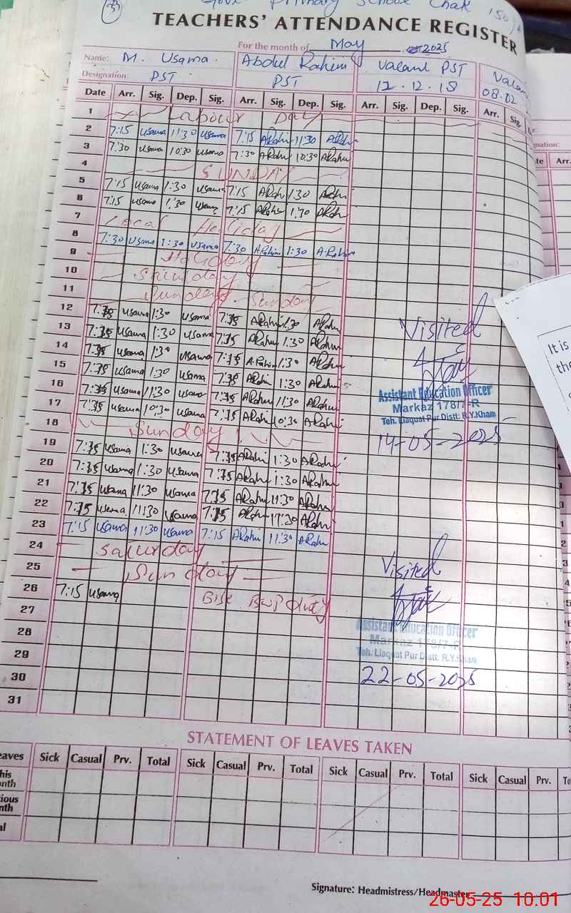 | 31**** | Ab**** Ra**** | PST | Regular | 0 | 0 | 0 | 0 | 0 | 0 | 0 | 0 | 0 | Exam Duty |